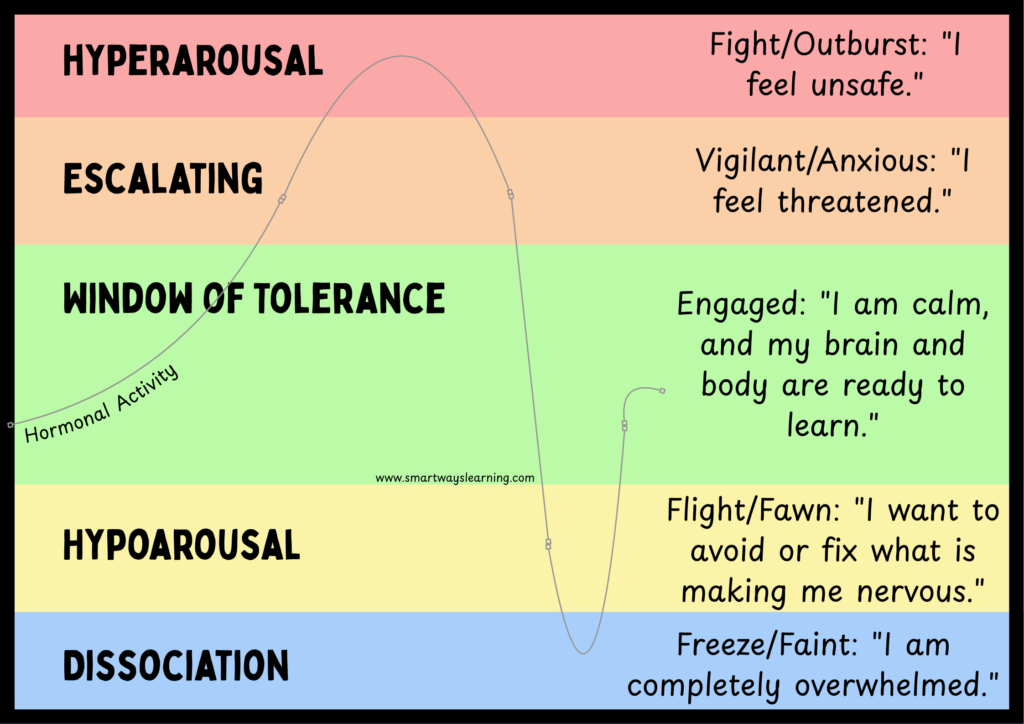 Ayre, K., & Krishnamoorthy, G. (2020). 3.6 Using the window of tolerance in the school context. Usq.pressbooks.pub. https://usq.pressbooks.pub/traumainformedpractice/chapter/3-6-using-the-window-of-tolerance-in-the-school-context/